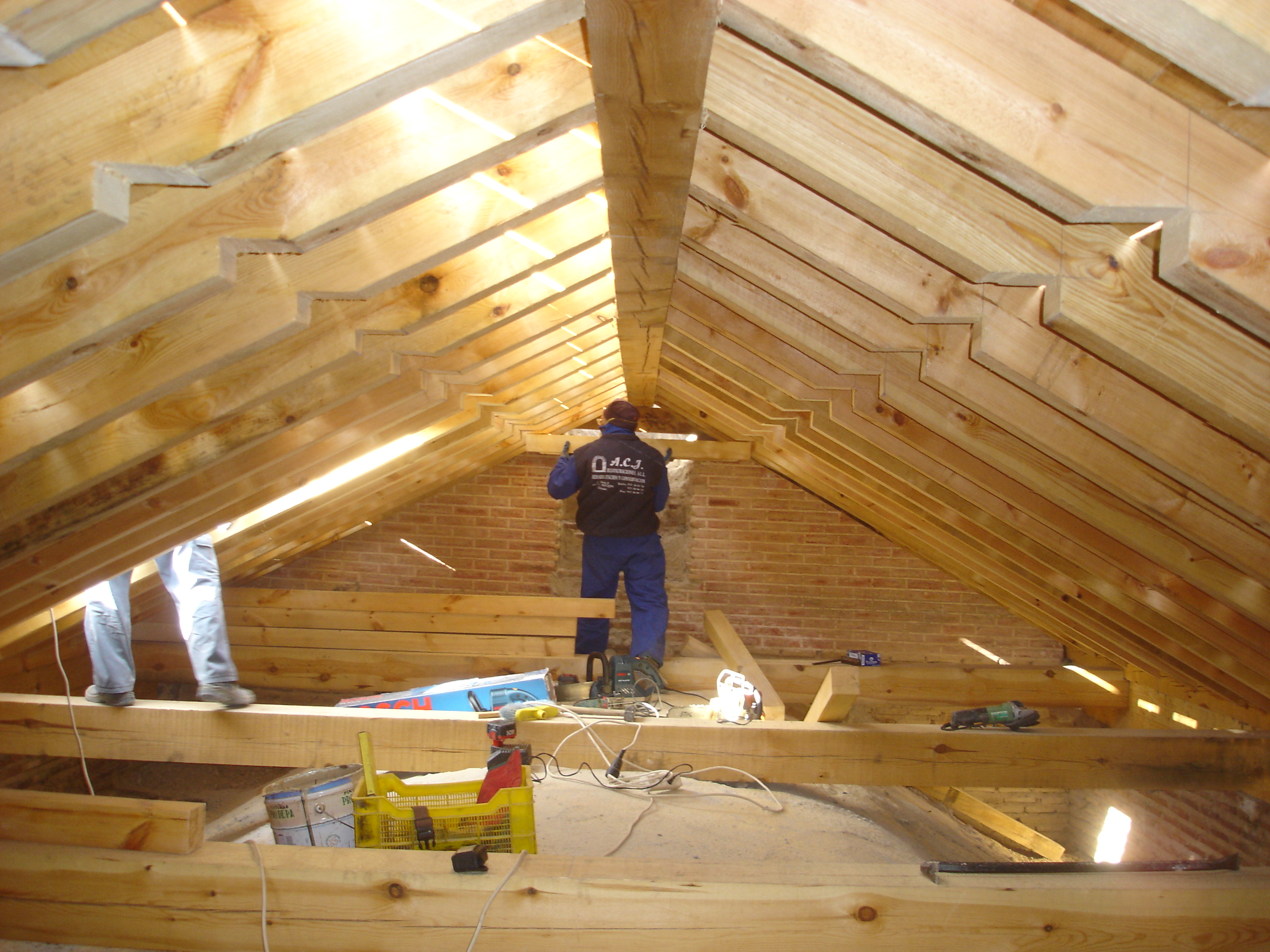 Trabajos detallados en esta web. También realizamos tareas de mantenimiento, limpieza de cubiertas, pequeñas reformas, artesonados y estructuras de madera.